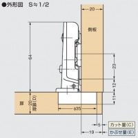 商品名 : LAMP 230型 スライド丁番 全カブセ/キャッチなし 【ビス/座金 別売】